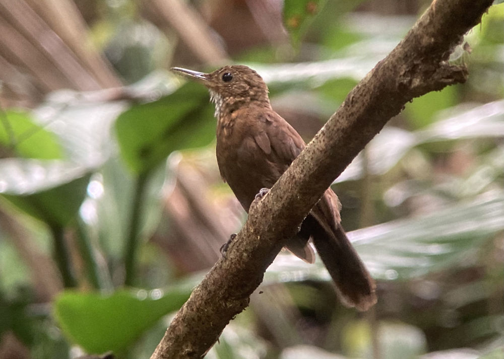 We spent the bulk of the day birding the first several kilometers of Pipeline, as far as the Juan Grande bridge. We had excellent luck with several very uncommon to rare species. Topping the list was a Speckled Mourner right overhead at our first stop, followed in short order by point-blank views of a Scaly-throated Leaftosser! A family group of Song Wrens gave excellent views, as did a pair of dapper Spotted Antbirds. A Streak-chested Antpitta started singing its somewhat mournful song, but we were unable to see this skulking ground dweller on this day. Four species of trogons, three species of motmots, Checker-throated Stipplethroat, White-flanked Antwren, Dot-winged Antwren, Bicolored Antbird, Yellow-backed Oriole, and Gray-headed Tanager—our list was growing at a rapid pace. Pipeline Road is truly a birder’s paradise!