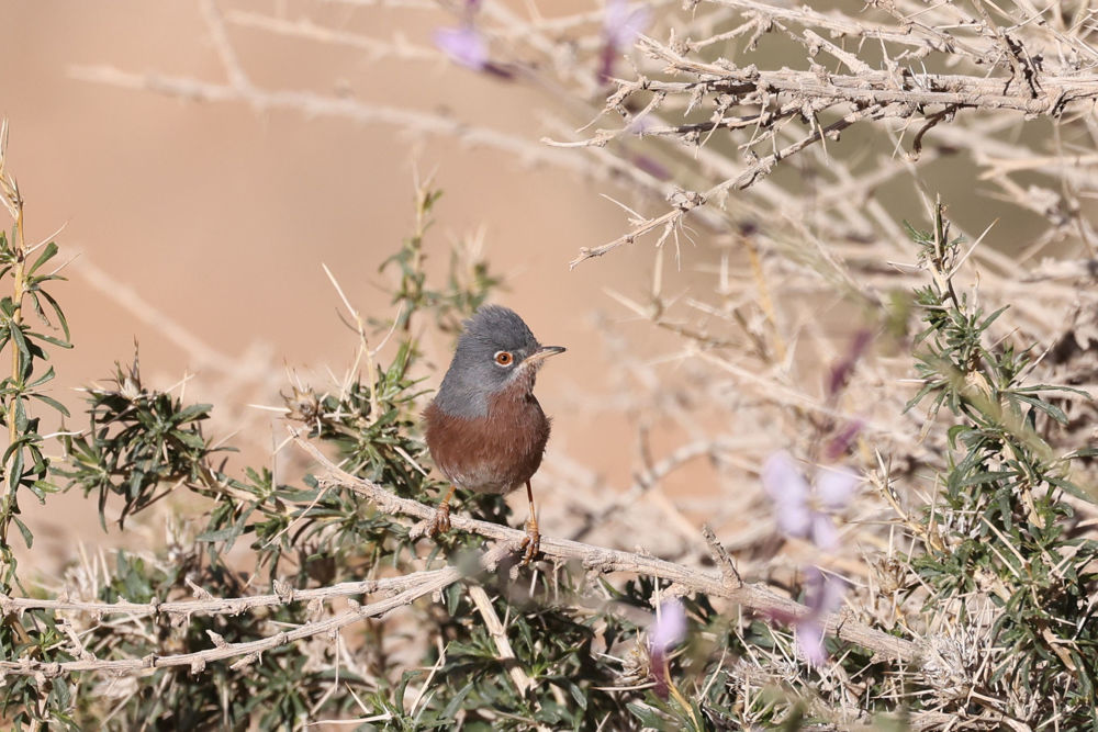 The next morning we drove past the dunes en route to a watering hole that attracted hundreds of sandgrouse for our viewing pleasure. Spotted, Crowned, and a few Pin-tailed sandgrouse made coursing flights past us and landed in the desolate field in front of us. Even as the wind gathered and we experienced our first mini-sandstorm, the sandgrouse came and went. Next, we made a few walks into the desert, searching for the African Desert Warbler, allowing us to study the plants of the desert, track beetle paths, and follow rodent runs as they left footprints in the desert sands. We watched the captivating display flights of male Greater Hoopoe-Larks as they ascended, singing on their strikingly black-and-white wings only to dive straight back to earth with their wings closed after a short flight.