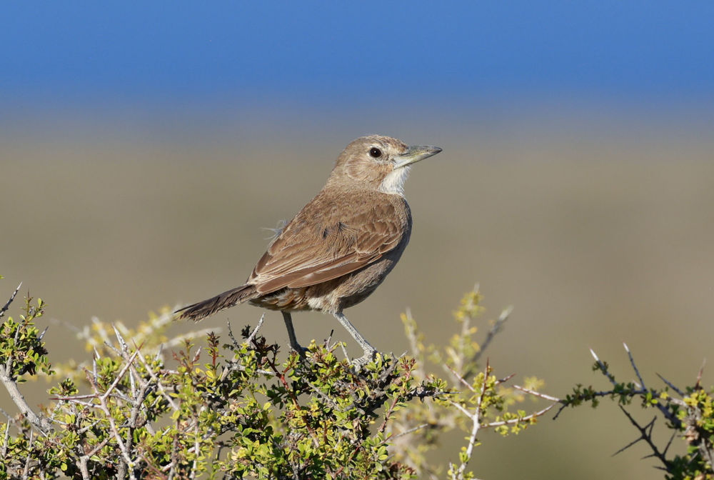 The next morning, before our flight, we had stellar looks at flocks of gorgeous Burrowing Parakeets, the endemic White-throated Cacholote, Patagonian and Sharp-billed canasteros, Patagonian Mockingbird, and Diuca Finch. We arrived in the afternoon in Trelew, gateway to the famous Valdes Peninsula, where we enjoyed a scrumptious dinner of fresh seafood.