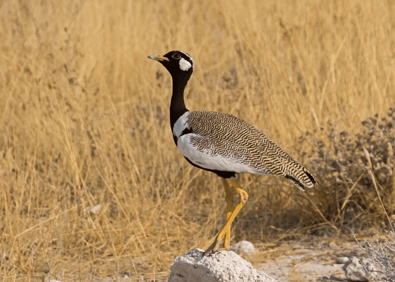 In Namibia’s Etosha, we position ourselves at productive waterholes where elephant, zebra, springbok, and greater kudu gather in steady procession. Lion, cheetah, and even black rhinoceros remain real possibilities. Birdlife is equally compelling, with Secretarybird striding the grasslands, Martial Eagle surveying the plains, and vivid endemics such as Crimson-breasted Gonolek brightening thorn scrub.